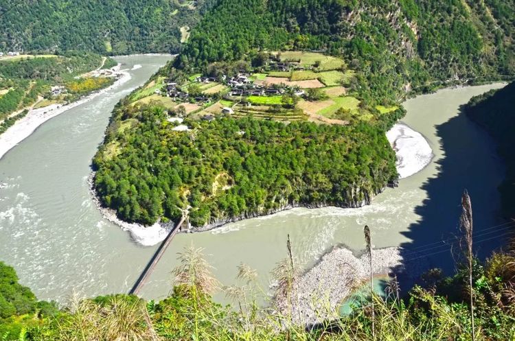 丙中洛镇位于云南省怒江州贡山县,被称为人神共居的天堂,怒江在这里拐了第一个270度的大湾,形成怒江第一湾,第一湾的江心上有个岛,岛上有个村,叫扎那桶,三面环水,一面靠山,种满桃花,三月桃花遍地开,所以又叫桃花岛。